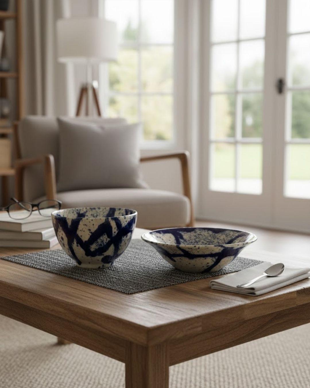 L’art du contraste à votre table Le set « Éclat d’Azur » n’est pas qu’un simple service de vaisselle, c’est une pièce d’expression. Chaque bol présente un décor unique de projections bleues intenses, rappelant le mouvement des vagues ou les coups de pinceau d’un artiste. Ce jeu de textures et de couleurs apporte une modernité immédiate à vos repas.