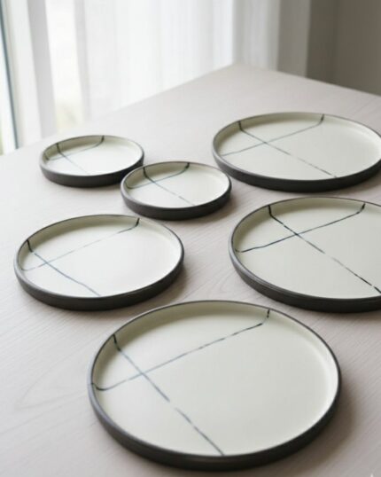 L’élégance graphique rencontre l’artisanat authentique. Le service Rivage Émeraude se distingue par ses rayures verticales peintes à la main et son vert profond. Un set complet, incluant un plat à tajine central, conçu pour transformer chaque dîner en une expérience gastronomique mémorable.