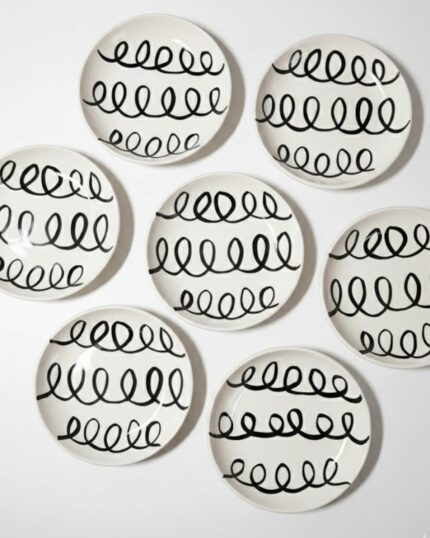 Une élégance graphique inspirée de l’océan Le service « Odyssée Marine » est une véritable célébration de l’artisanat et du monde marin. Chaque pièce est ornée de motifs de poissons dessinés à la main, mêlant traits calligraphiques et détails géométriques. Le contraste puissant entre le noir profond et le blanc éclatant offre une esthétique moderne qui s’adapte aussi bien à une table décontractée qu’à un dîner sophistiqué.